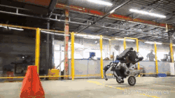 脚踩风火轮,一蹦四尺高的研究型机器人Handle,也对Atlas的优化有一定贡献。虽然它被Gizmodo评价为“像只驴子”(……),不过它弹跳力非凡,移动速度很快,甚至还可以搬运东西。