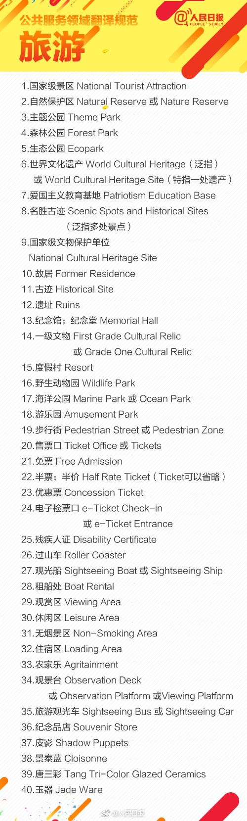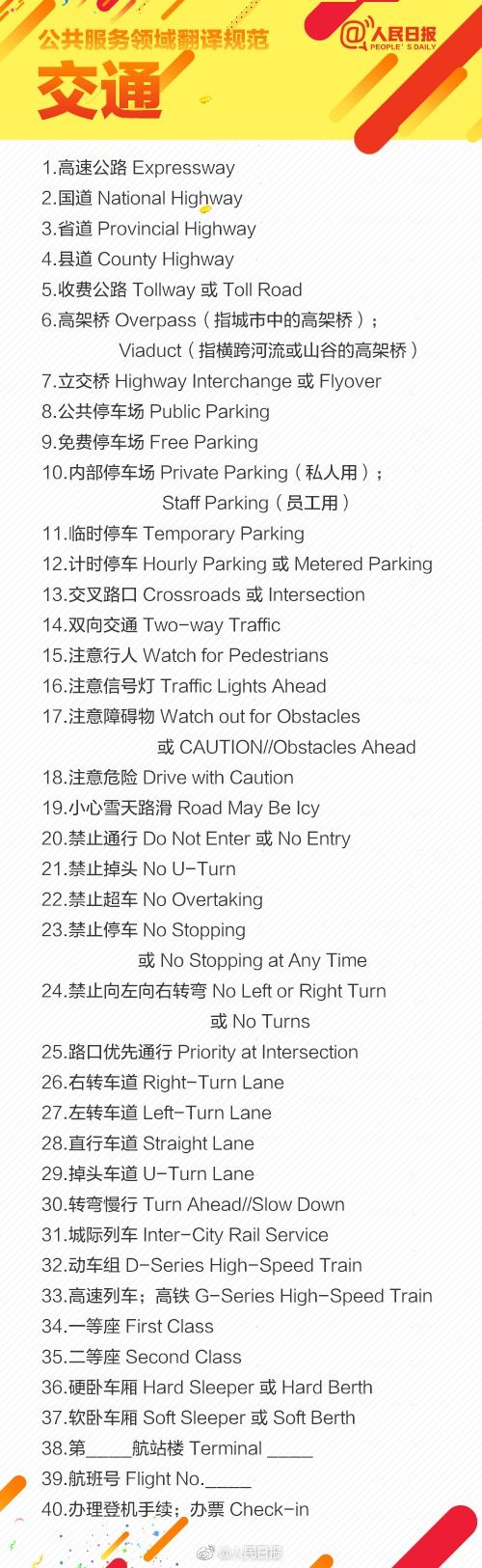 以下是人民日报列举的部分公共服务领域英文译写规范,一起感受下: