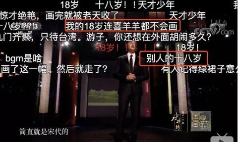 有意思的是,一贯严肃正经的央视还主动与二次元氛围浓厚的弹幕视频网站哔哩哔哩(以下简称“B站”)进行合作,将《国家宝藏》的网络首播权之一给了B站,顺利攻破与年轻观众的“次元壁”。弹幕中诞生的“三维立体环绕Diss”、乾隆“农家乐审美“、“王羲之嫌弃三连”…也成为了2017年收官热词。