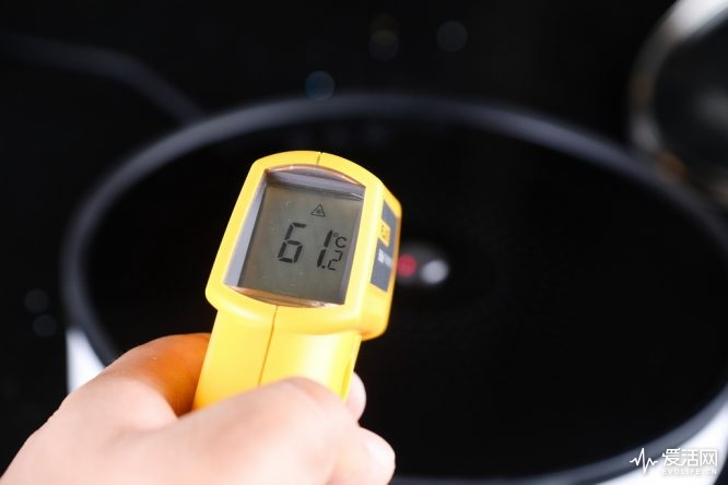 小米还给电磁炉的周边围上了一圈可拆卸式橡胶垫圈,在翻炒或是误碰时,都能有效的防止锅具从电磁炉上滑脱。当然也无需担心这套垫圈会被面板的高温所影响,只需烧一锅水,就可以从锅底气泡的分布看得出小米电磁炉的加热线圈主要集中在炉具中心位置,并且热力供应也非常均匀,这样可以有效的防止在烹调时一锅菜食却同时出现夹生和焦干的烦扰。而在抬起锅具后进行温度测量,也可以看到小米电磁炉的侧边温度要比中心温度低的多,所以橡胶垫圈也不会因直接与高温接触而产生安全问题。