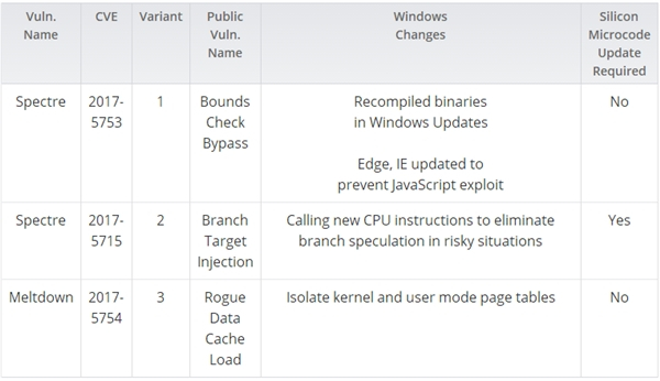 对于V1,Windows的解决方式是二级制编译器更新和从JS端加固浏览器,对于V2,微软需要CPU指令集更新,对于V3,需要分离内核和用户层代码的页表。