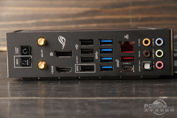 I/O接口自带挡板,在接口数量方面应有尽有,其中USB3.0就有4个,USB2.0也有四个,五个镀金的音频接口,S/PDIF输出接口,还有核显输出的HDMI接口和DisplayPort接口,以及现在流行的Type C接口。