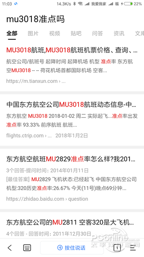 语音搜索结果:没有直接的回答,但是搜索结果还是有正确答案的显示与提示。