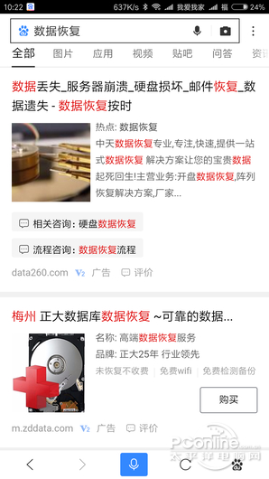 图19 简单搜索“数据恢复”图20 手机百度“数据恢复”