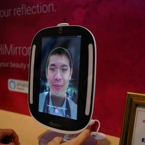 我们在 CES 的展台上体验了一台能够测试皮肤状态的智能梳妆镜 HiMirror。