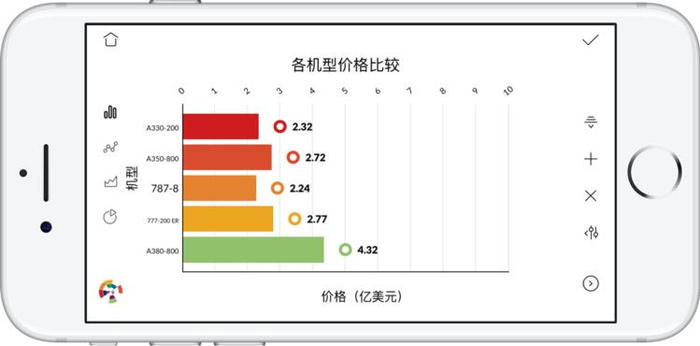 另外它也不能做到两个维度的比较,比如在上图中,只能对比不同飞机机型的价格,而不能比较 2007 年各机型的价格和 2017 年各机型的价格。