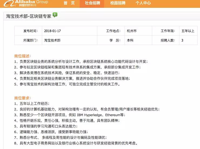 从招聘上看,淘宝也希望能直接从一些知名企业中挖到区块链人才,比如IBM。