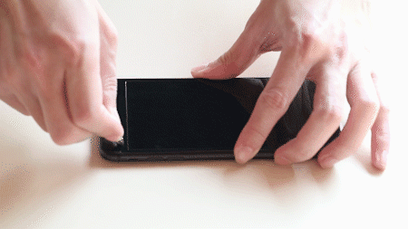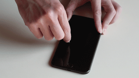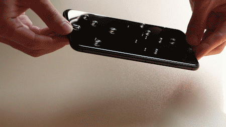 这个环节主要看3种贴膜是否好贴,软边和全玻璃两张3D全屏膜就非常好贴,只要对准位置一放即可。粘贴时还是要注意挤出里面的空气,但就算里面有空气残留,也可以揭开膜重贴,重贴起来也比水凝膜简单。