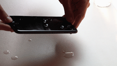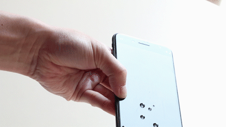 对比方法也很简单,只要往屏幕上滴水,然后倾斜屏幕,观察水滴滑落速度,一般速度快说明疏油疏水能力好。
