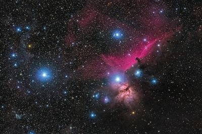 马头星云(IC 434),摄影器材为艾顿CEM25EC赤道仪、富士X-M1微单、裕众70SA摄星镜,单张10分钟曝光,累计曝光4小时。吴振摄