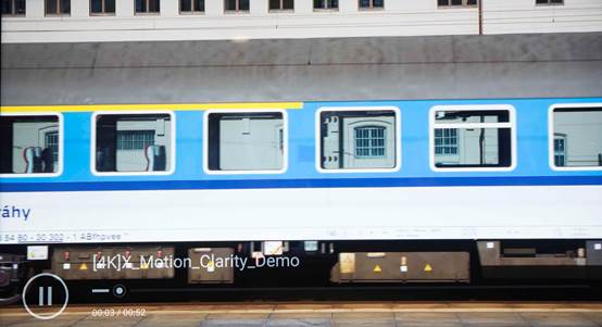 但是到了动态场景,比如这段列车行驶中的视频(屏摄无法充分展示效果),X9000F凭借明锐动态技术的加持,相比X9000E和X9300E,车身上的文字更清晰,拖尾现象变得更加轻微,运动物体的整体亮度也更高。
