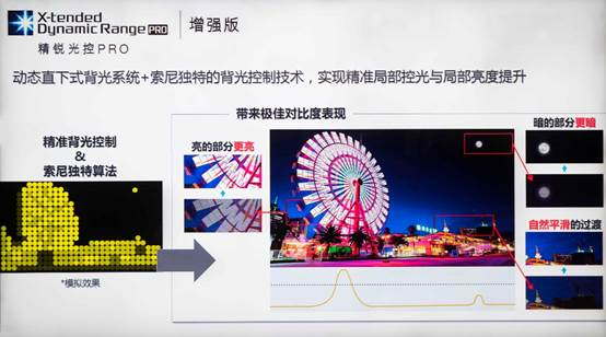 X9000F采用的依旧是直下式背光,主要控制系统由精锐光控Pro标准版升级为增强版,可以更精准控制高密度的背光,带来更好的对比度表现。
