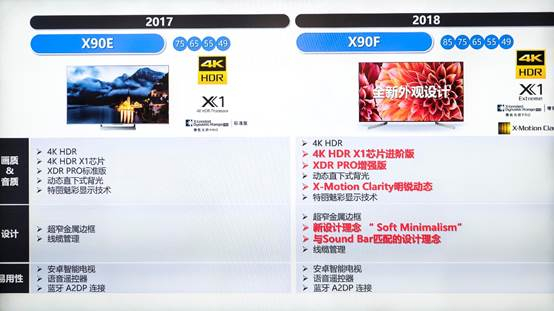 此次上市的X9000F系列电视是去年推出的X9000E系列的升级版,与X9300E、Z9D系列同为索尼目前高端液晶电视。相比X9000E,X9000F带来的主要升级地方包括: