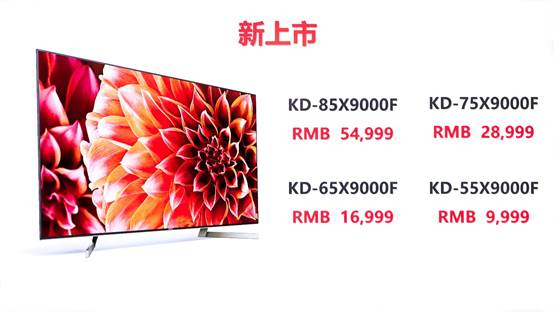 此次首发上市的索尼X9000F系列电视共有49/55/65/75/85英寸五个尺寸,其中,55英寸售价9999元,最大的85英寸售价54999元。
