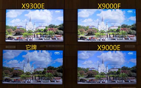 在现场的对比演示中我们看到,就静态画面而言,X9000F相比X9000E的提升是非常显著的,无论是画面色彩、亮度、对比度都有绝对领先优势。与X9300E的表现非常接近,尤其是颜色还原如出一辙,但X9300E的亮度显得更高。仔细看天空的云彩,X9300E要更白更明亮。