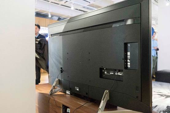 X9000F的外观进行了全新设计,最大的改动是底座由之前的中间立式变成了两侧支架式。这样设计的一个重要原因,是为了更好匹配与电视同步推出的Soundbar产品——HT-X9000F。此外,边框也变得更窄,正面视觉效果更好。