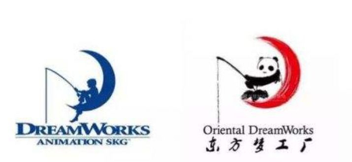 看看东方梦工厂最初的logo就不难理解到这家合资公司的基因与抱负——一只水墨画的熊猫坐在红色的月亮上垂钓,这其中蕴含了东方文化、《功夫熊猫》、梦工厂动画三大元素。