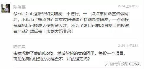 可如今,快的哪去了?陈伟星就是个失意者。滴滴背后的朱啸虎似乎在放声大笑。