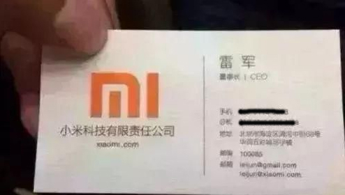 小米logo几乎占了名片的半壁江山