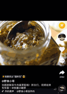 据野食小哥签约公司大禹的工作人员透露,野食小哥通过抖音购物车功能售卖定制款牛肉酱,最多一天达到了7万多流水——当天野食小哥发布了一条用泡面配酸菜牛肉酱的视频。