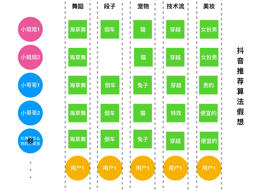 由于抖音的拍摄模式与音乐强相关,每个爆品与一个 BGM 挂钩,算法可以很方便的识别。相比于快手费力不讨好的精准推送,抖音只要确定了你喜欢一个爆品,再把录了同一个爆品的所有视频都推给你就行了。