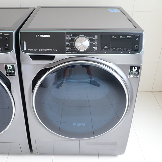 洗涤甩干之后,我们将用三星睿慕·净速干衣机DV90N8388AX进行第二步烘干实验。