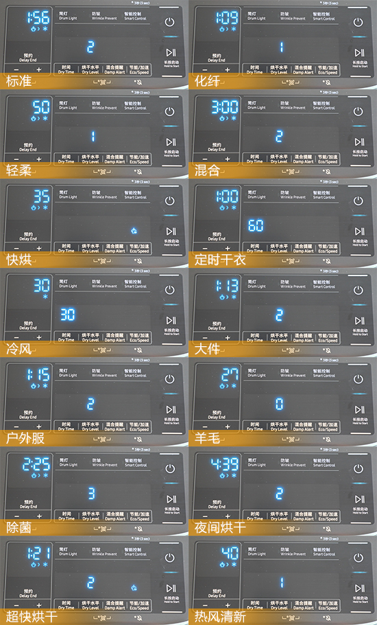 考虑到衣物较多,我们并没有选择“35分钟快烘”程序,而是选择了适用于混合衣物,烘干负载量更大的“超快烘干”程序(35分钟快烘程序最大负载为1公斤,适合每日衣物烘干),它的标准用时为1小时21分钟。