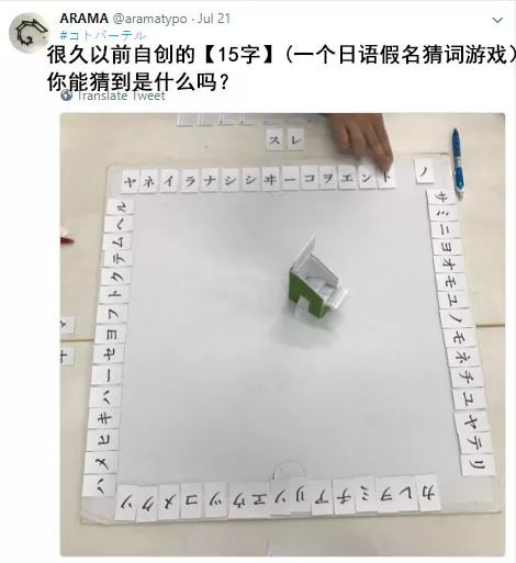 喜欢文字解谜这一点,从他日常发的推特中也可以看出来,他常常把假名卡片放在一起玩猜谜游戏。