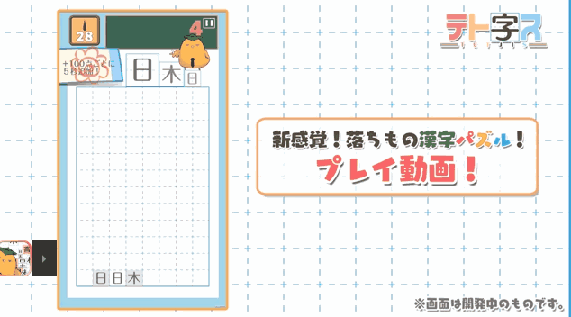 不过他可能要失望了。因为早在去年,就已经上线了一款名为”テト字ス~落ちもの漢字パズルゲーム~“的益智小游戏,玩法与AMARA的想法如出一辙,同样是用俄罗斯方块的原理,来组合并消除汉字。