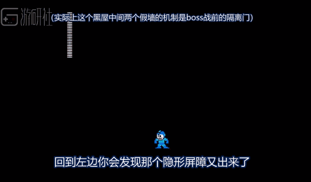 例如,在今年6月我社翻译的Shesez的另一个视频中(可点击文章下方的“阅读原文”前往B站观看),他就展示了《洛克人4》里一个奇怪的空间:在青蛙人关卡中的一个地方,可以用穿墙代码穿到另一头,在这个地图之外的黑暗空间里,如果用多段跳代码不停往右跳,会在某个地方被无形的屏障挡住去路,而如果调整位置则可以越过它,但这并不代表它消失了,再往左跳它仍然会挡住你。除此之外视频还展示了很多平常镜头看不到的有趣内容,如有兴趣可以点开观看。