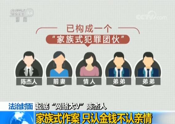 警方初步调查显示,陈杰人伙同其前妻、情人、弟弟等人,已构成了一个“家族式”犯罪团伙:陈杰人负责指挥调度、管理微信公众号、起草并发布文章;其前妻负责财务管理;情人负责代理案件,收集内部爆料、协助陈杰人管理微信公众号;其弟陈伟人、陈敏人负责接单、线下操作、收集炒作线索等。