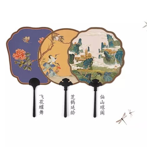 这款充满了“大家闺秀”风的团扇,一共出了3个造型:飞花蝶舞、芝鹤延龄和仙山琼阁。