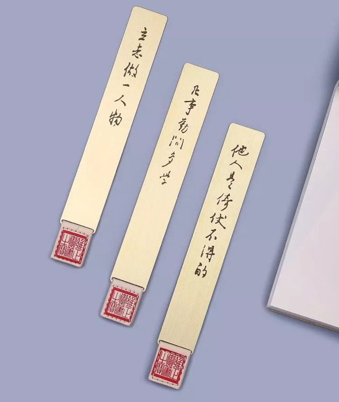 这款系列书签一共出了5个款,分别是:立志做一人物、莫移初心、凡事勤问多学、他人是倚仗不得的和朕笑而览之。