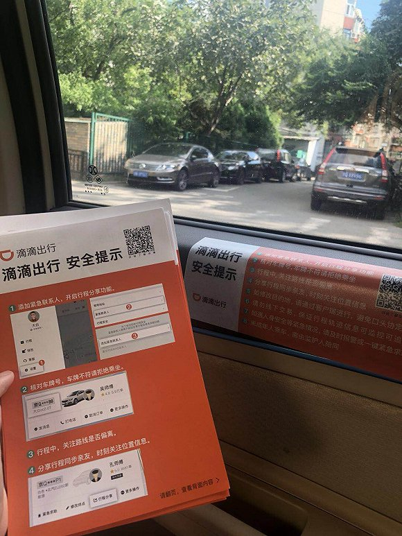 在新一轮安全措施中,滴滴在车内放下了贴纸和宣传单