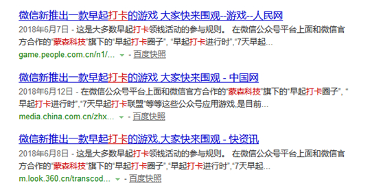 在起步阶段,各个打卡公众号运营者都在疯狂推广,通过媒体进行狂轰滥炸的报道是宣传的常用套路。某公司推广其多个打卡平台时,甚至在一些知名媒体进行了投放,但现在这些公众号平台都已经无法被搜索到。