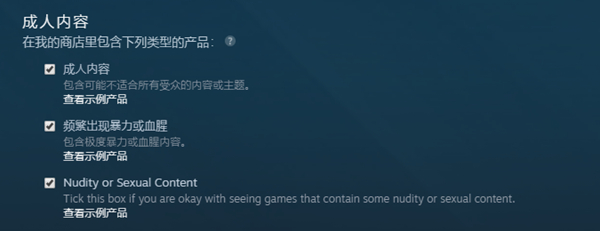 此前,Steam商店针对成人内容上线了一个商店页面筛选功能,玩家可以利用这一功能所提供的四个选项,进行有条件的过滤掉那些成人游戏内容,这些种类选项包含了血腥暴力或成人色情。不过今天,有玩家发现Steam国区的成人筛选选项被修改,“仅限成人,强烈的色情内容”这一选项被删除。