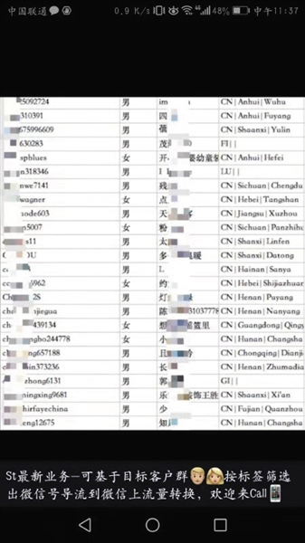 此外,一些生产WiFi探针设备的公司通过与电信运营商合作,获取了用户手机Mac地址与手机号的关系,使得广告主可以通过打电话、发短信以及弹窗广告的方式进行营销;另一些公司则接入了百度、腾讯等公司的大数据库,为广告主提供用户画像,甚至直接提供用户的微信。