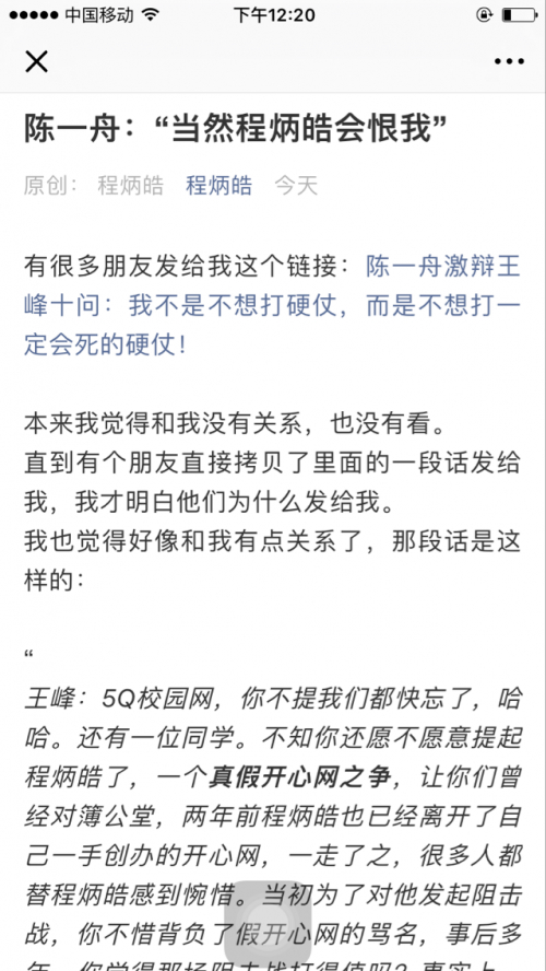 有很多朋友发给我这个链接:陈一舟激辩王峰十问:我不是不想打硬仗,而是不想打一定会死的硬仗!