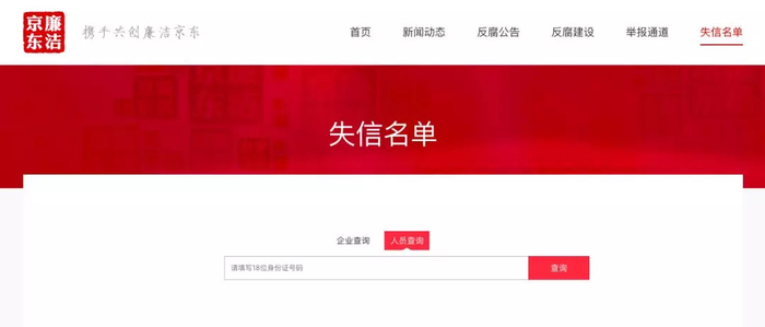 在廉洁京东的官网中,挂着今年8月最新的反腐败公告。