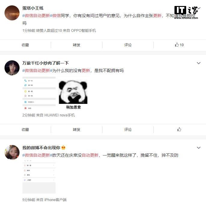从微博搜索之后可以发现,被自动更新版本的还有许多其他网友。而对于微信新版用户界面,不同的网友也有不同的看法,有网友觉得变丑了,也有网友觉得用起来还比较舒服。
