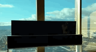 这台电视在待机状态下看起来就像一个黑色的高级音响,能和你家的观景落地窗(如果有的话)完美融为一体。在开机时,电视又会在十秒之内徐徐升起。