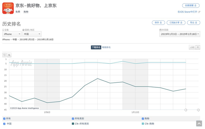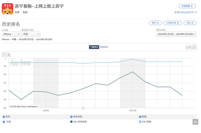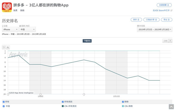 但年货节对于不同电商的手机应用拉动作用有差别。它对于天猫、苏宁、京东都有拉动作用,但自 1 月 3 日以来,拼多多 iOS 应用的日下载排名反而下降了。