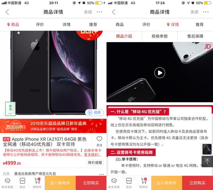 这款 iPhone Xr 的商品说明是,这款手机是苹果公司与中国移动独家合作的机型,线上销售渠道仅限于京东商城、中国移动官网。