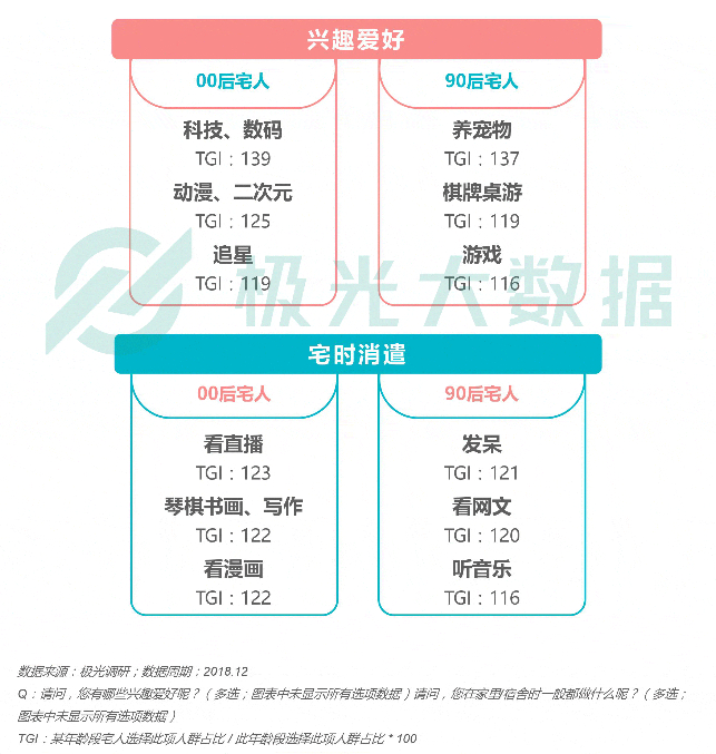 根据极光大数据的调研结果,相比出门社交,宅人更享受宅家做自己兴趣内的事。