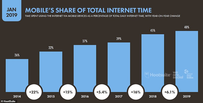 2019年的报告显示,全球57%的人口现已连接到互联网,平均每天在线6.5小时。Leas的作者Simon Kemp估计世界数字社区将在2019年使用互联网超过12亿年的总和。