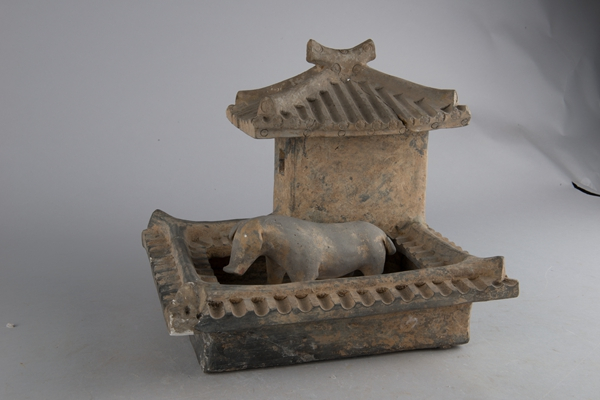 研究发现我国汉代农业区墓葬中出土陶猪、陶鸡、陶狗等模型器的数量,以1猪:2鸡:1狗出现的频率较高,推测这样的规模可能是当时家庭畜产的理想水平。墓葬中模型器的数量是对当时社会现实生活的一种模拟或放大,反映出汉代“理想家园的一般模式和小康标准”。