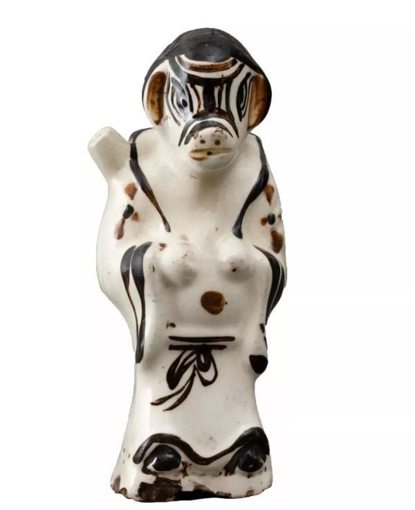 民国 白底黑花猪八戒形瓷倒流壶 邯郸市博物馆藏 “金猪拱福”展品