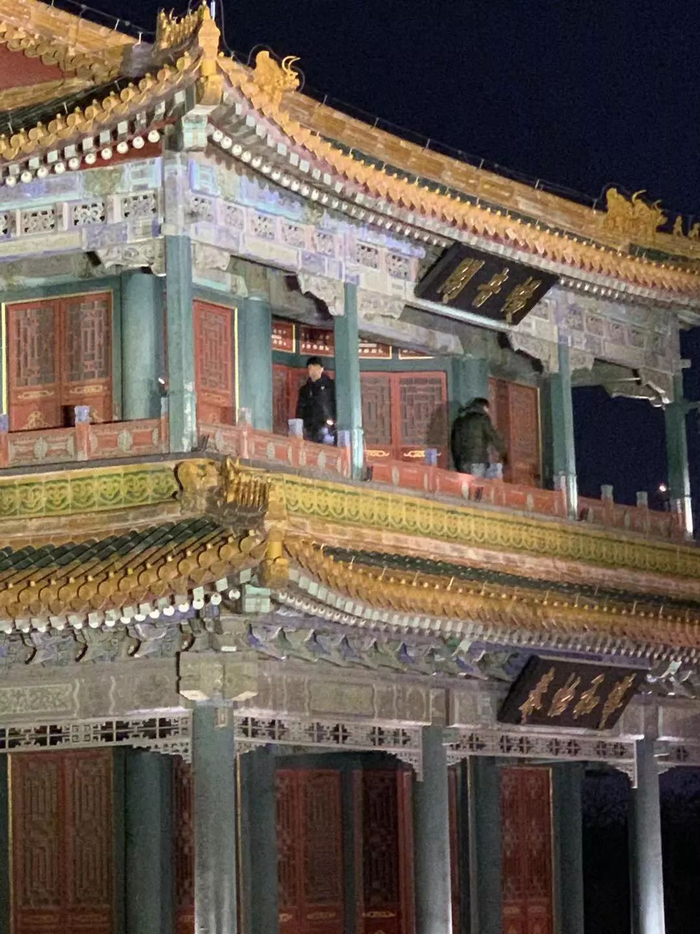 太和殿被广场上两台巨大的射灯映照出了5种花色。虽然大红大紫、花团锦簇的风格有些一言难尽,但却没人能控制住自己拍照的手。