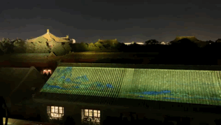 屋顶上的《千里江山图卷》连绵不绝。故宫北侧的灯光虽然比南侧清雅素净不少,但《千里江山图卷》比午门附近的《清明上河图》看起来要更加别致恢弘。
