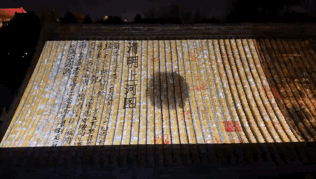 下了午门城楼后,故宫东南角屋顶上投映着《清明上河图》。走在寒风里,耳边响起流水声的音效,一时很是震撼,对任何人来说,以这种方式欣赏这幅国宝级的北宋风俗画都是头一回。